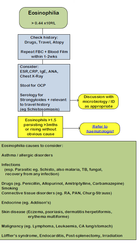 Bei erhöhter Eosinophilenzahl bei einem Erwachsenen (1):