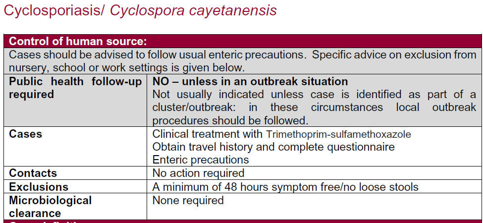 Gastroenteritis durch Cyclosporiasis (Cyclospora cayetanensis) - Hinweis auf Arbeits- und Schulverbot