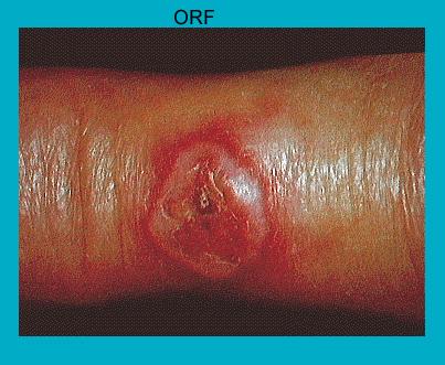 Orf, auch bekannt als kontagiöse Ekthyme, ist eine schnell wachsende zoonotische, mukokutane Läsion, die durch ein Pockenvirus verursacht wird. Sie tritt im Allgemeinen bei Arbeitnehmern auf, die Kontakt zu Schafen haben (1).