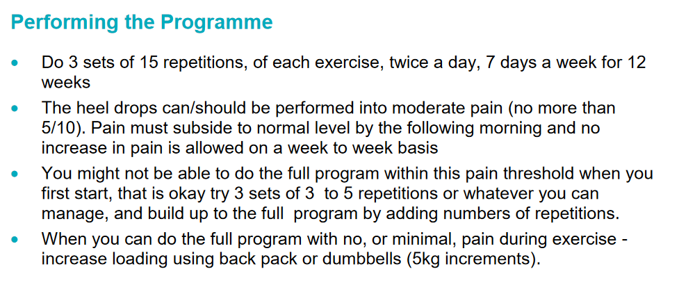 Im Folgenden wird eine pragmatische Beschreibung der exzentrischen Übungen für die Achillessehnen-Tendinopathie gegeben:
