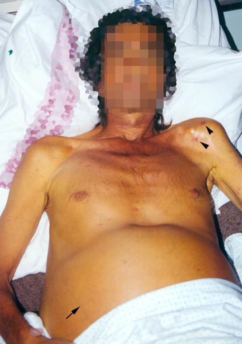 Dieser Patient hat eine chronische Lebererkrankung, beachten Sie: