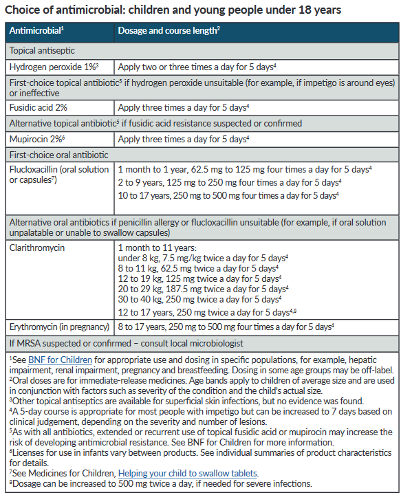 Antibiotic treatments have been suggested by NICE (1):