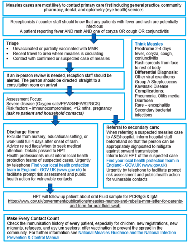 NHS England a fourni des conseils concernant les cas possibles de rougeole se présentant aux soins primaires (4) :