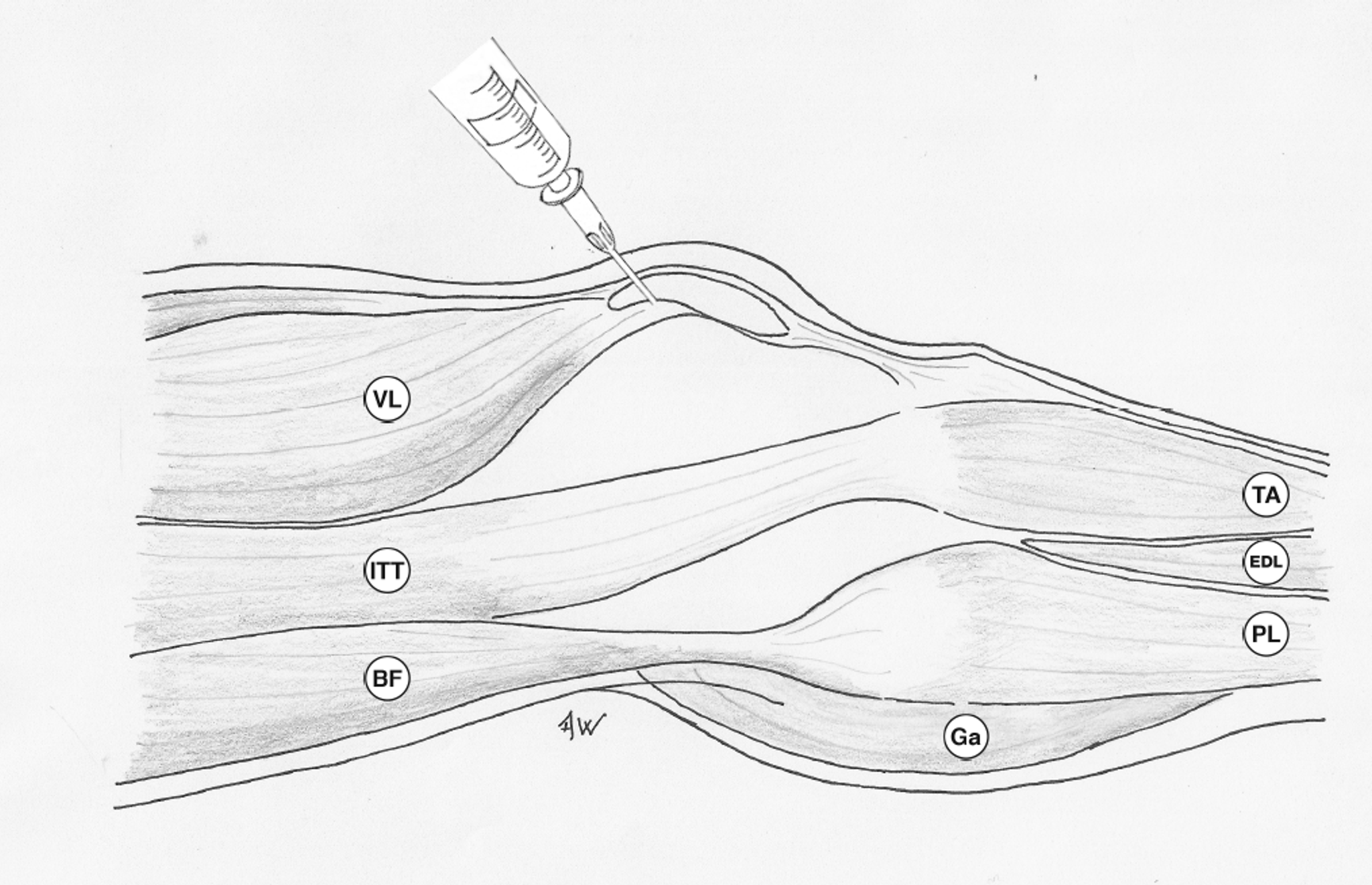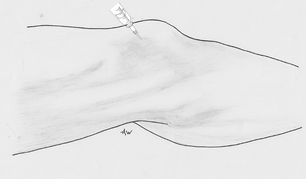Injection latérale de l'articulation du genou - vaste latéral (VL) en place :